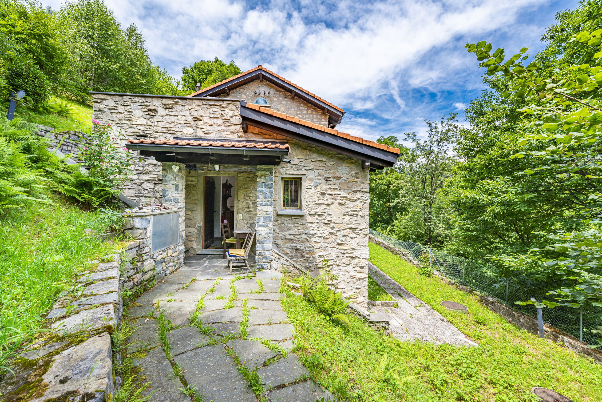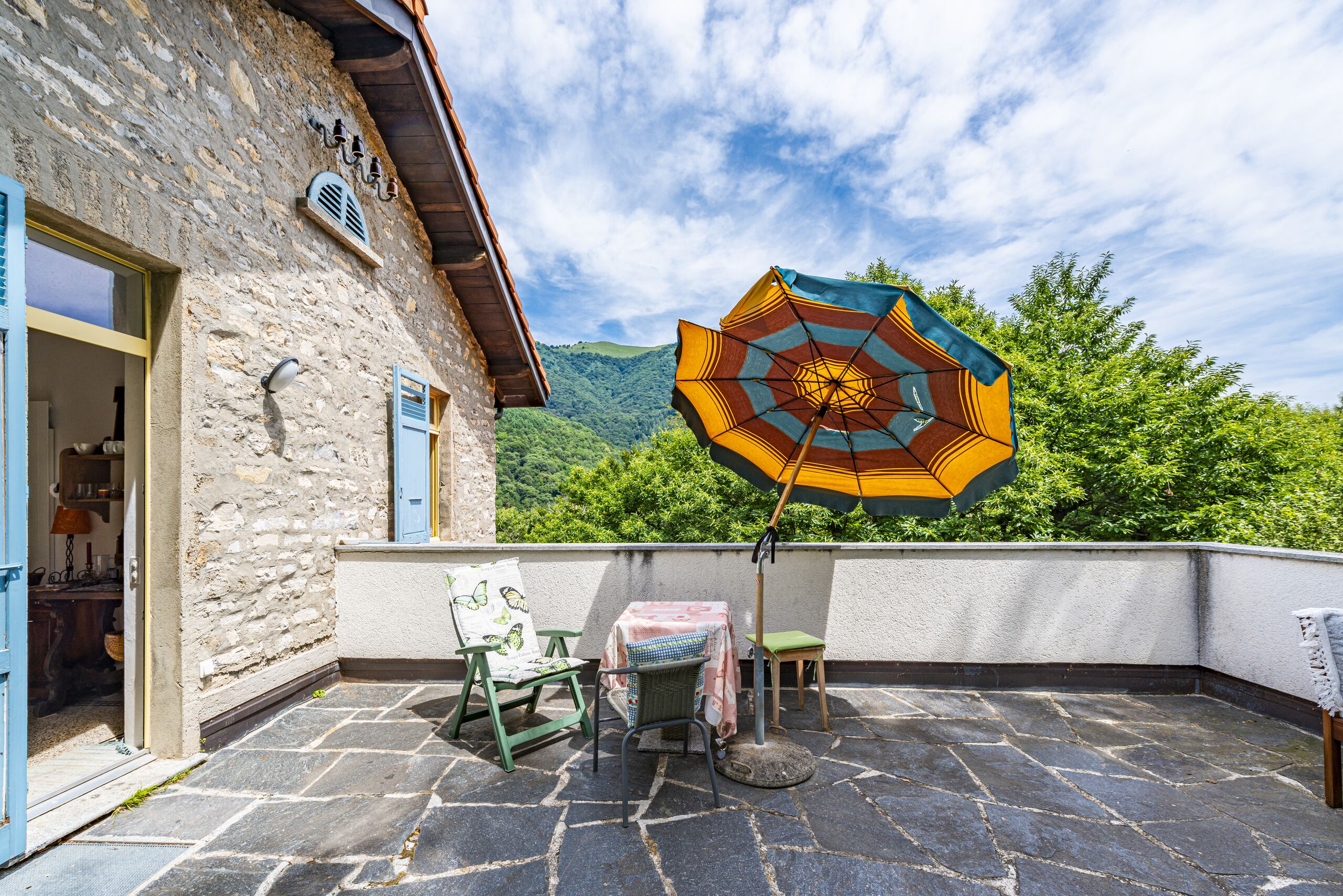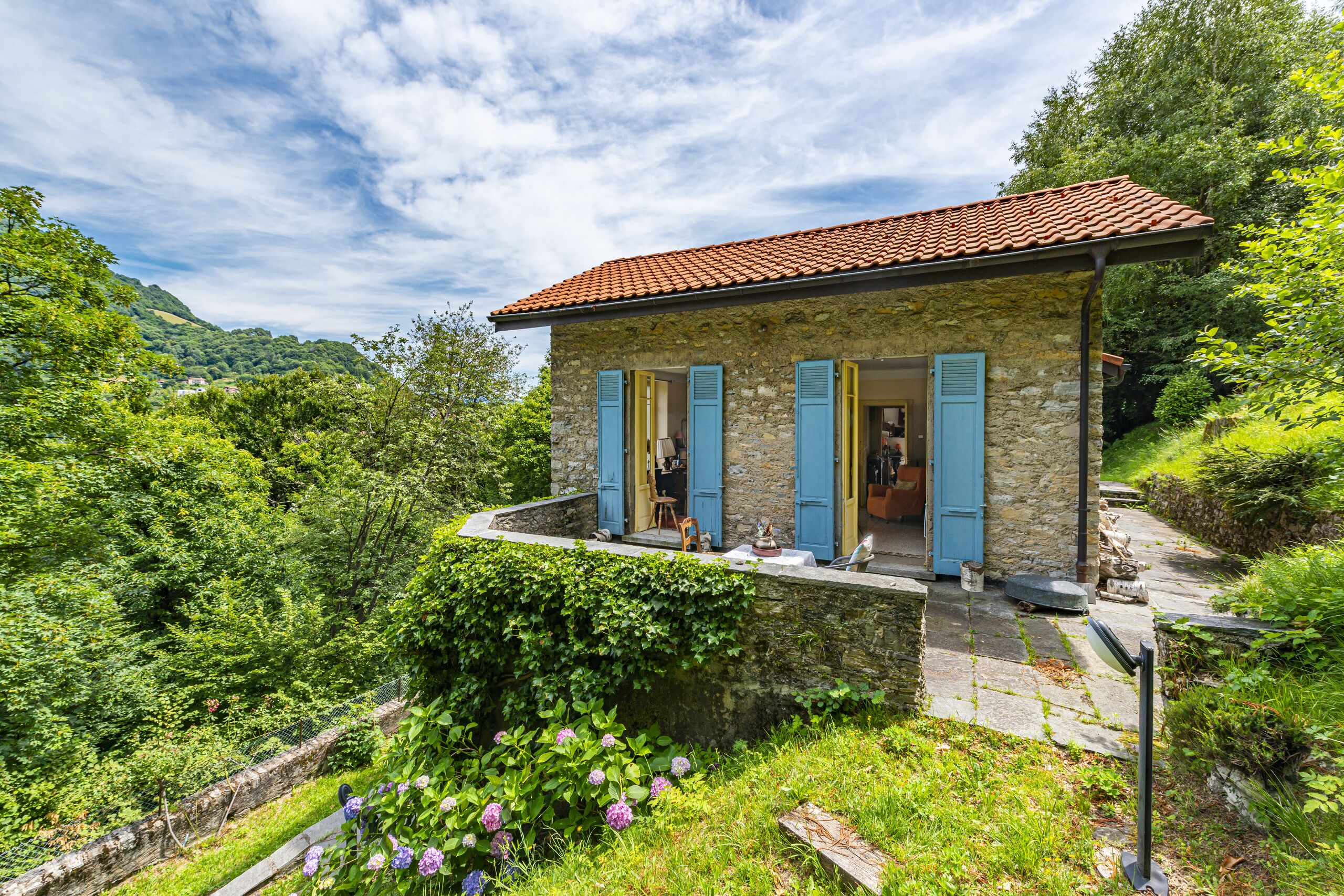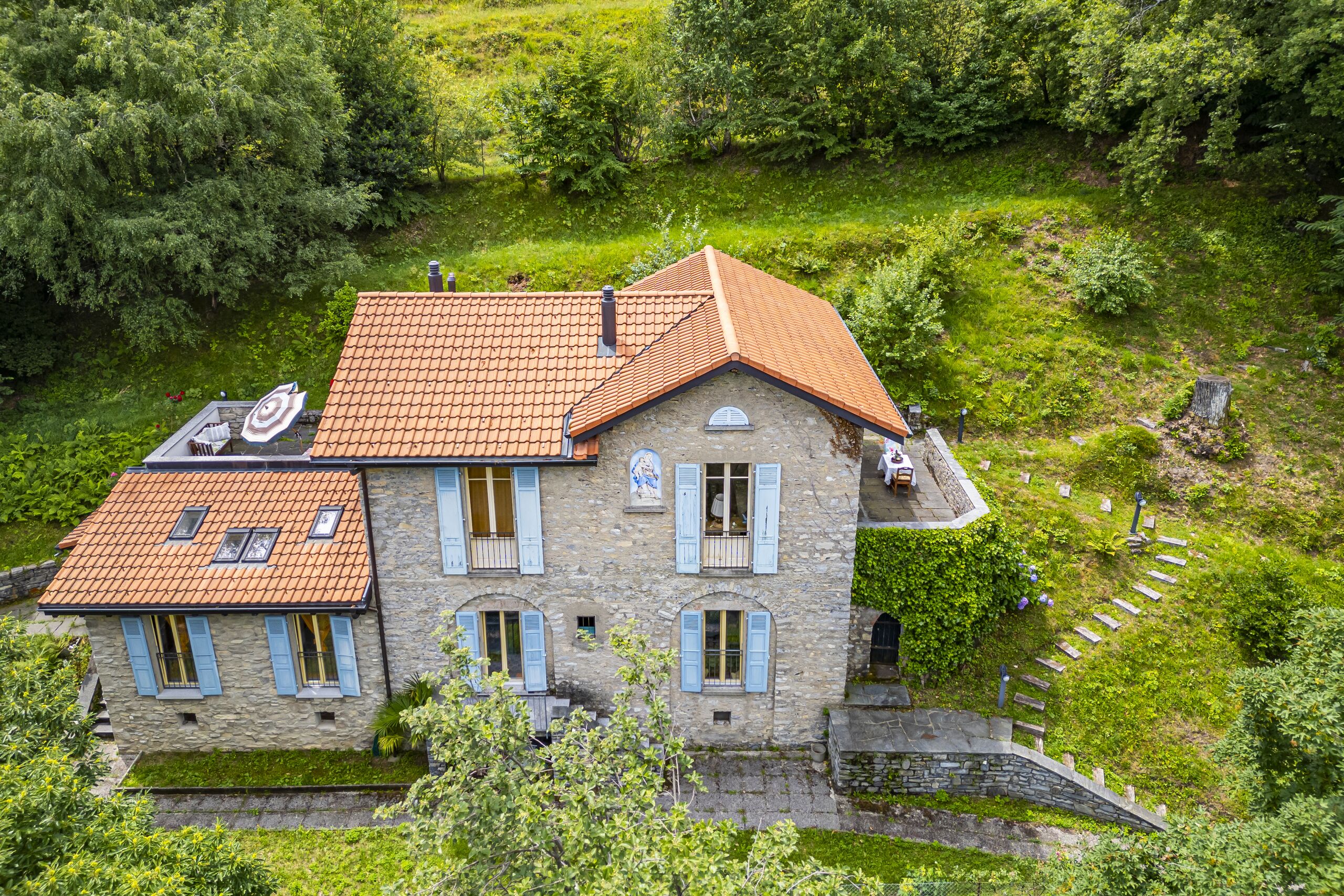 Das Anwesen steht auf einem Grundstück von 1'200 qm mit Nord-Ost-Ausrichtung und bietet einen herrlichen Panoramablick auf das malerische Dorf Brè und die umliegenden Berge.